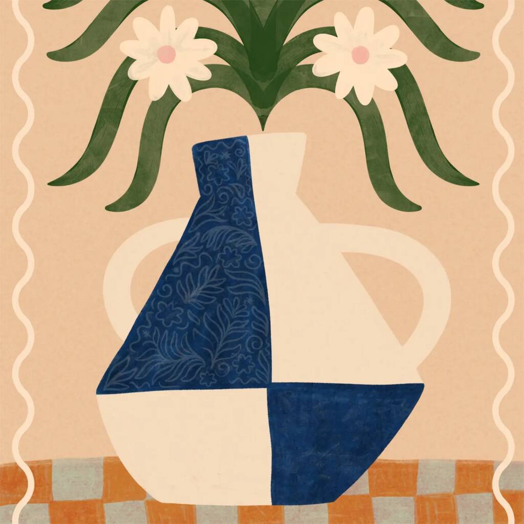 Floral Vase Bohemian Botanical Art Print, Flower Poster