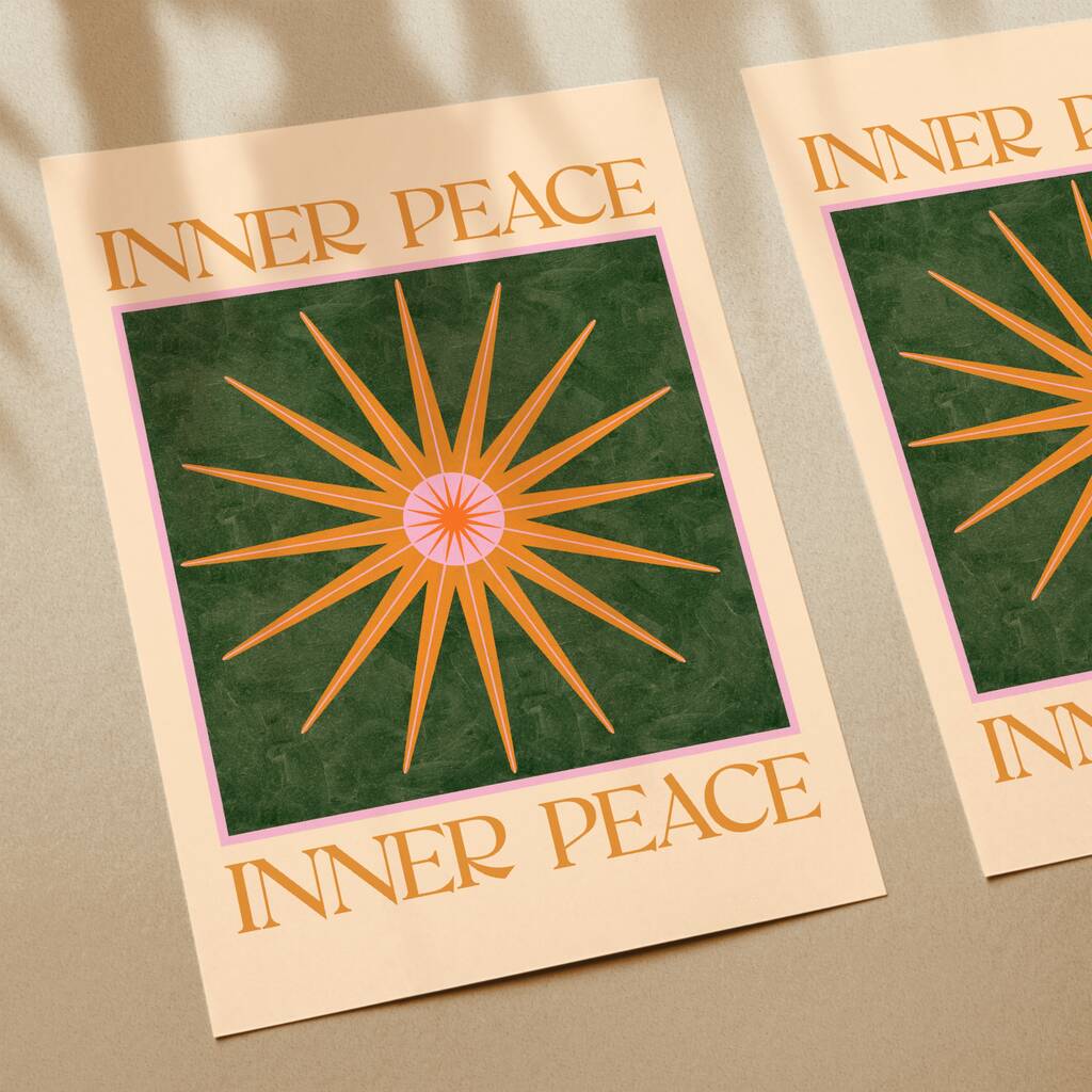 Inner Peace, Bohemian Celestial Sun Yoga Meditation Art Poster