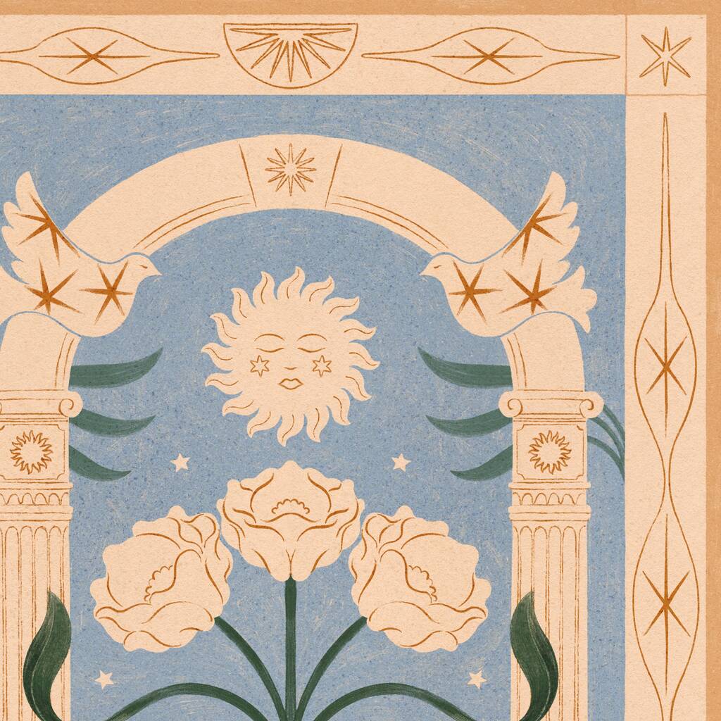 Solar Bloom, Floral Bohemian Celestial Sun Art Print, Botanical Flower Poster