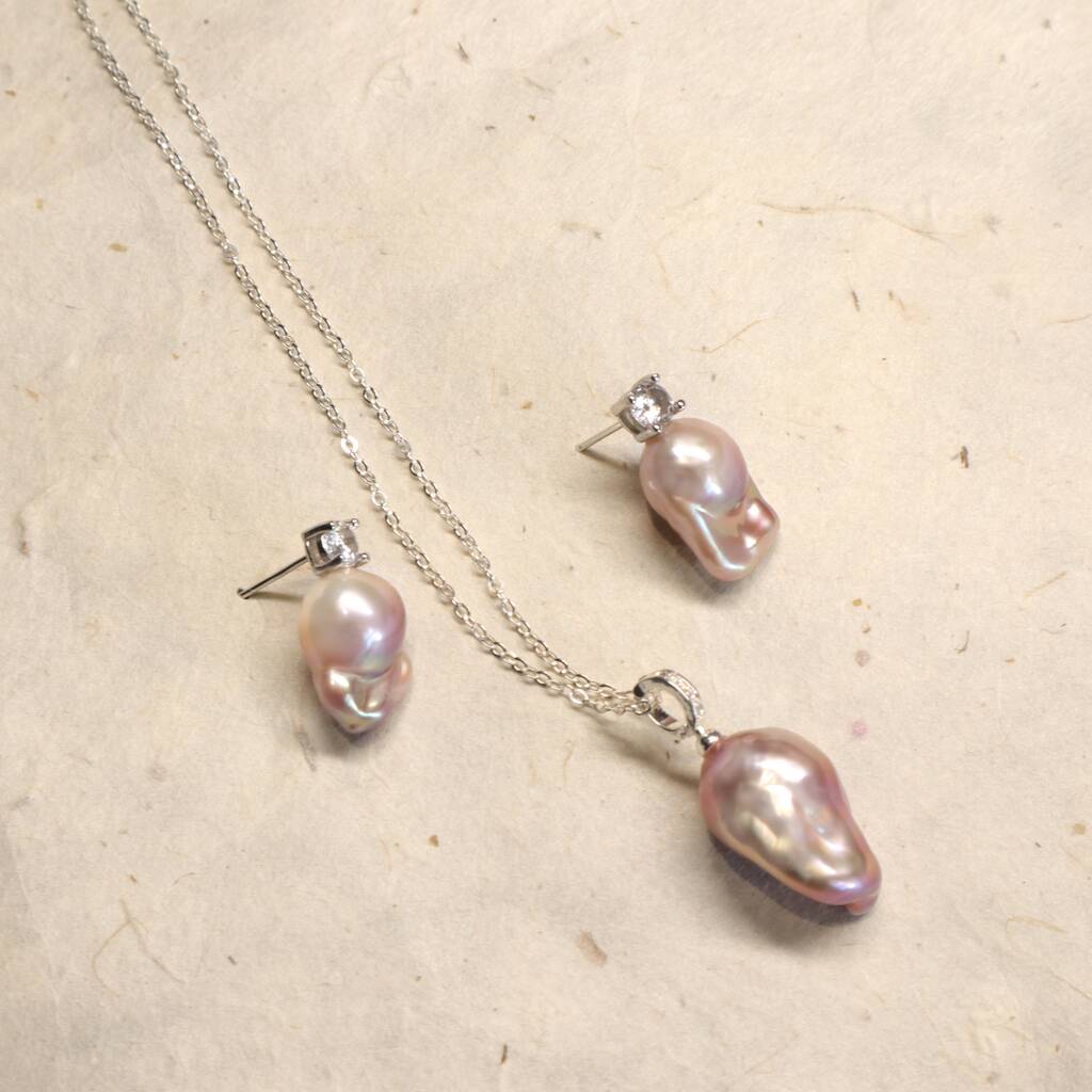 This sterling silver necklace features a rare pink baroque pearl, 5A-grade zircon, and a versatile pendant clasp for personalized styling.A true collector’s masterpiece, this sterling silver necklace features a rare natural pink short-tail baroque pearl as its centerpiece, radiating exceptional luster. The pendant clasp can be opened for versatility, allowing for personalized styling. Paired with a dazzling 5A-grade zircon, it embodies elegance and sophistication. Perfect to pair with the matching earrings for an unforgettable look, or as a remarkable gift for someone special.