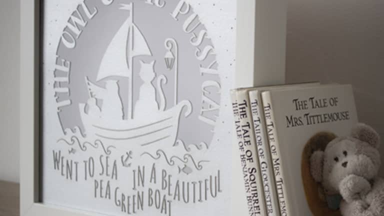 They use intricate paper cuts back lit with cool-running, energy efficient LED’s in a box frame to create gorgeous silhouettes that appeal to children and adults alike. They are an ideal special gift for a newborn, baby-shower, christening, or 'just because'.
