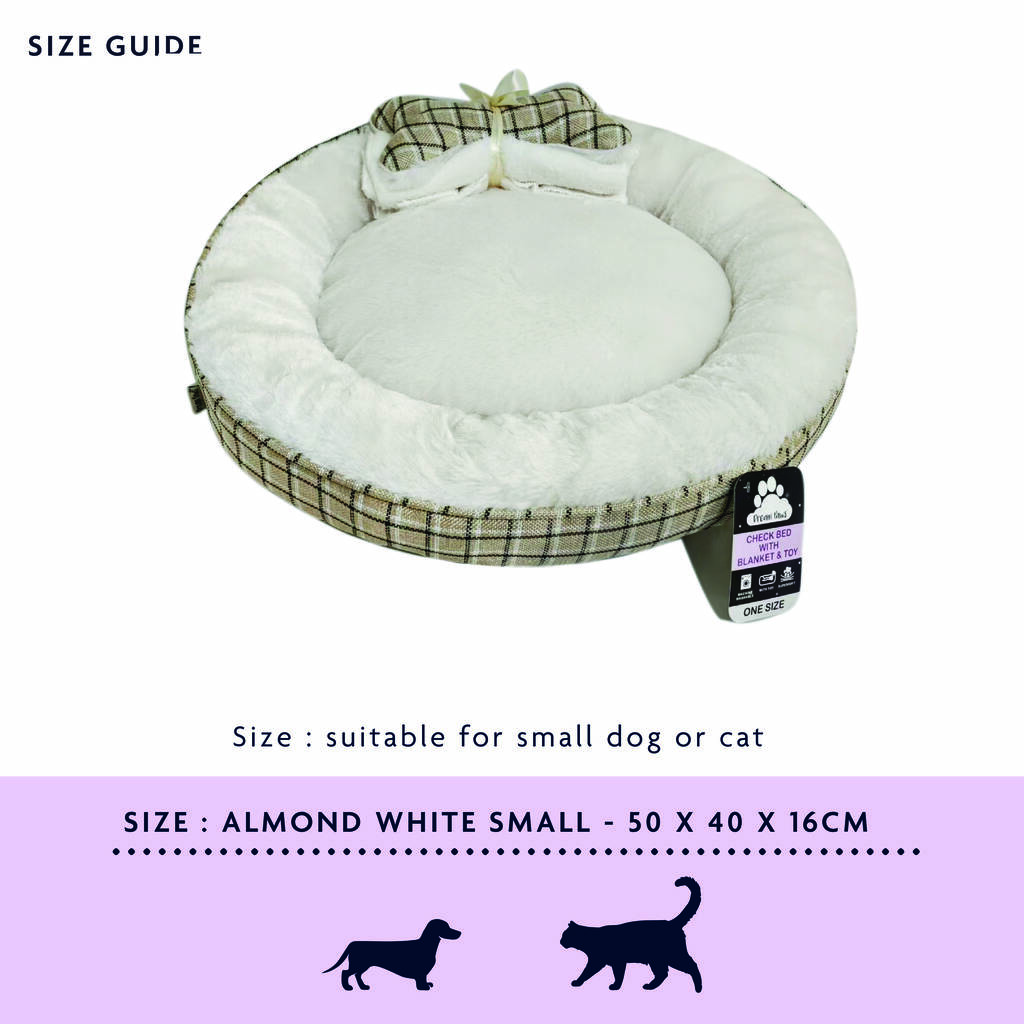 Dream Paws Neutral Check Bed With Blanket And Toy