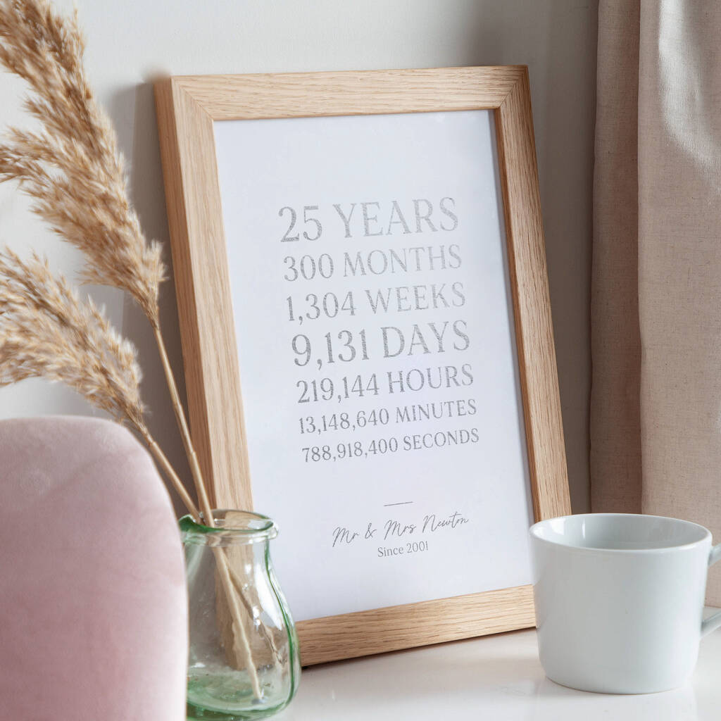 25 Years Together Foiled Silver Anniversary Timeline Print