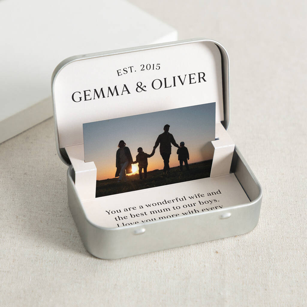 Minimal Font Anniversary Photo Card Keepsake Tin