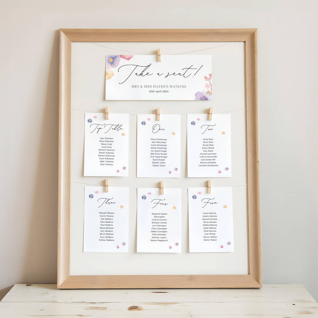 Pressed Floral Wedding Table Plan Cards