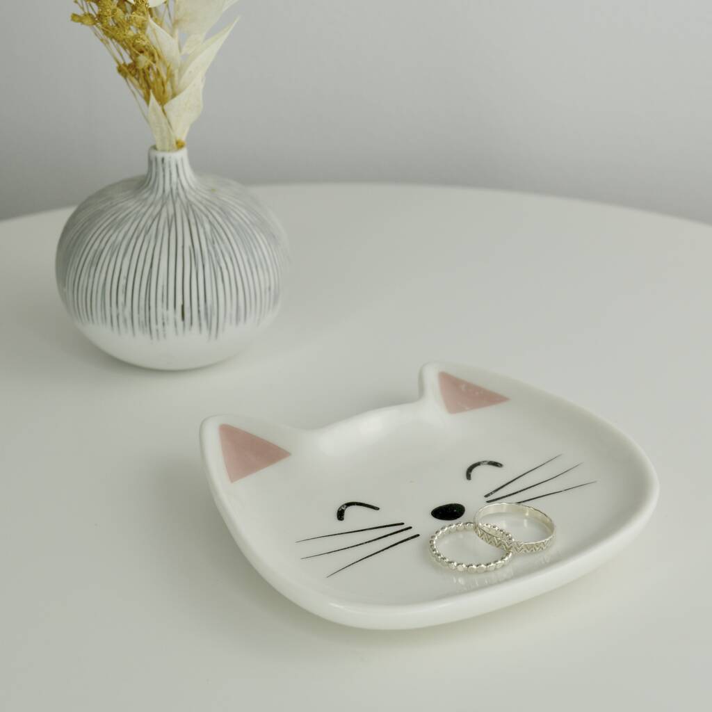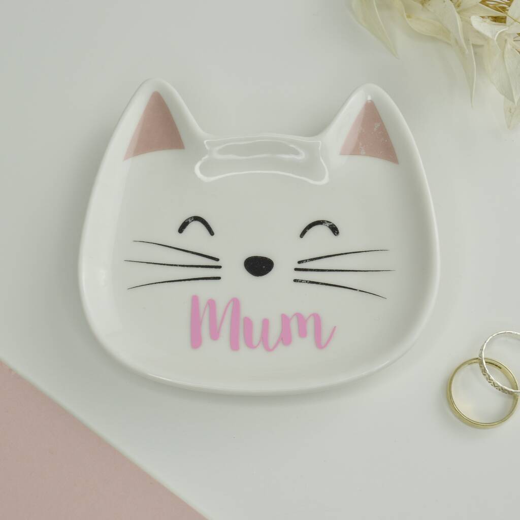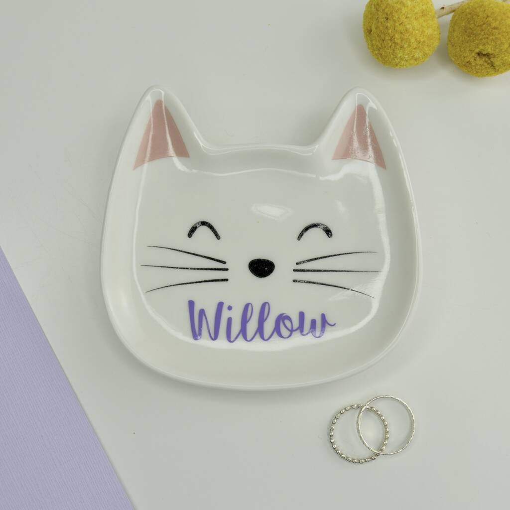 Cat Ceramic Jewellery Dish Personalised