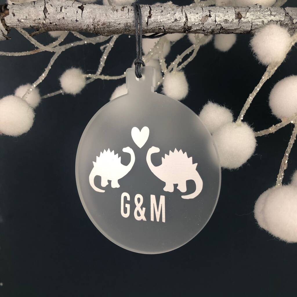Couples Personalised Dinosaur Christmas Tree Decoration