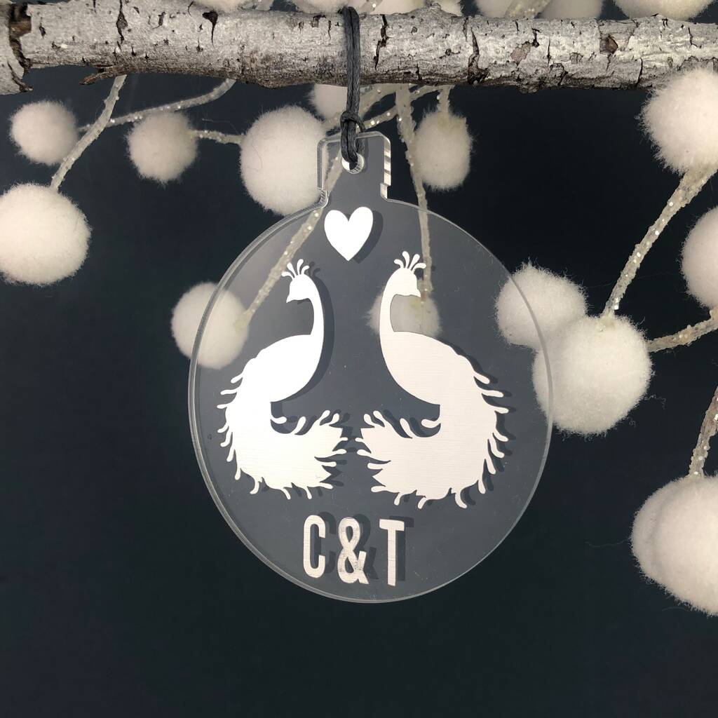 Couples Personalised Peacock Christmas Tree Decoration 34 Colours, 1 of 10