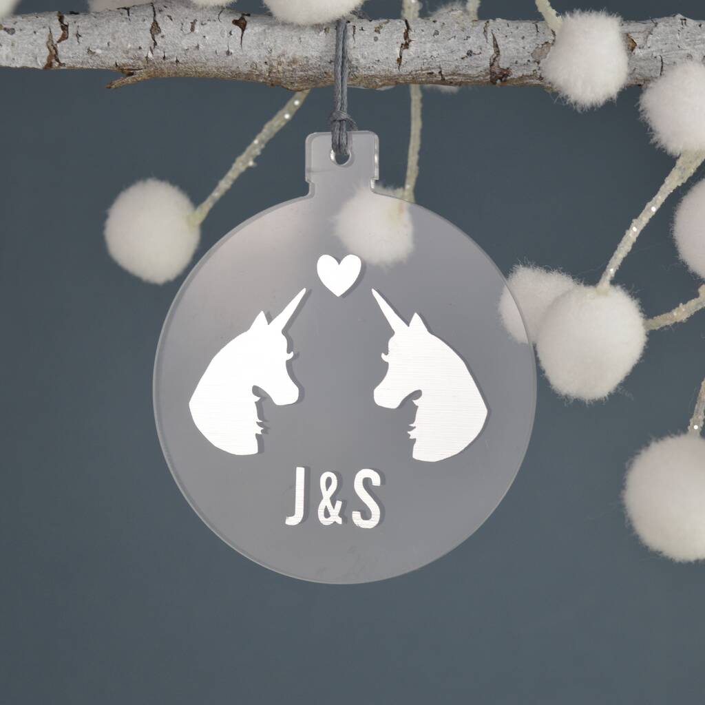 Couples Personalised Unicorn Christmas Tree Decoration 34 Colours