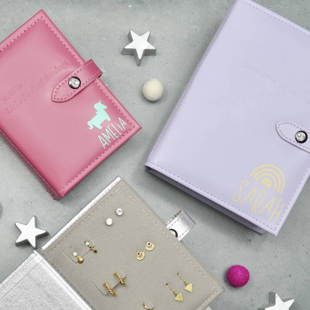 The Little Book of Earrings (Both Sizes): Available in pink, purple, lilac, grey, teal, gold, silver, black, white or green with grey pages.