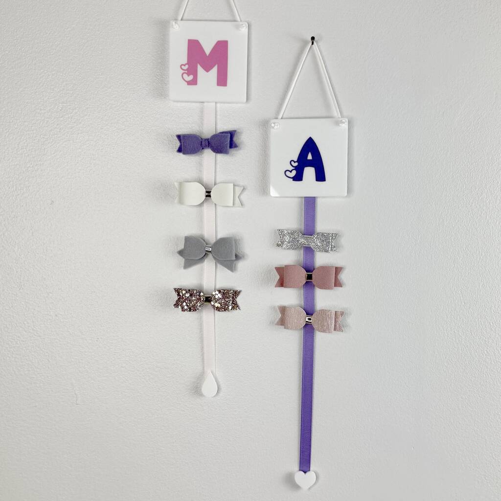 Girls Personalised Initial Heart Hair Bow Holder 24 Colours