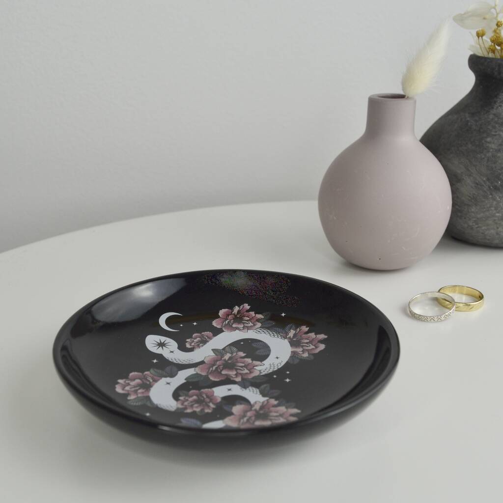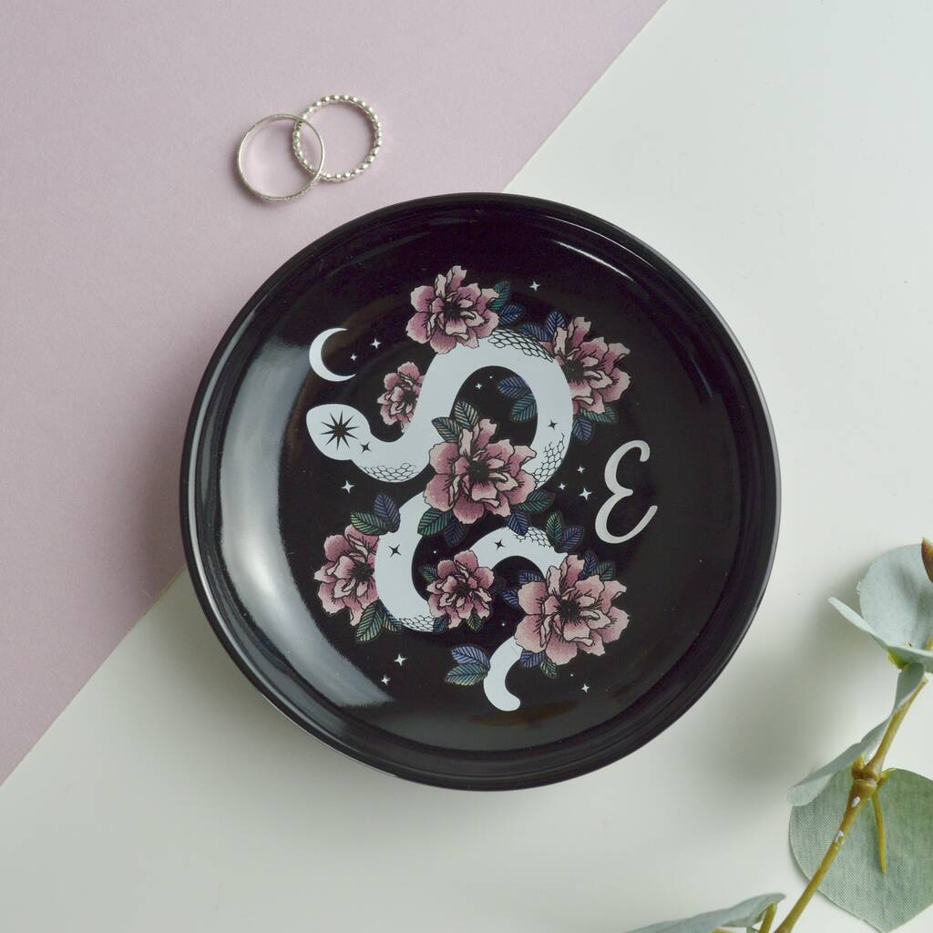 Personalised Celestial Snake And Floral Jewellery Dish