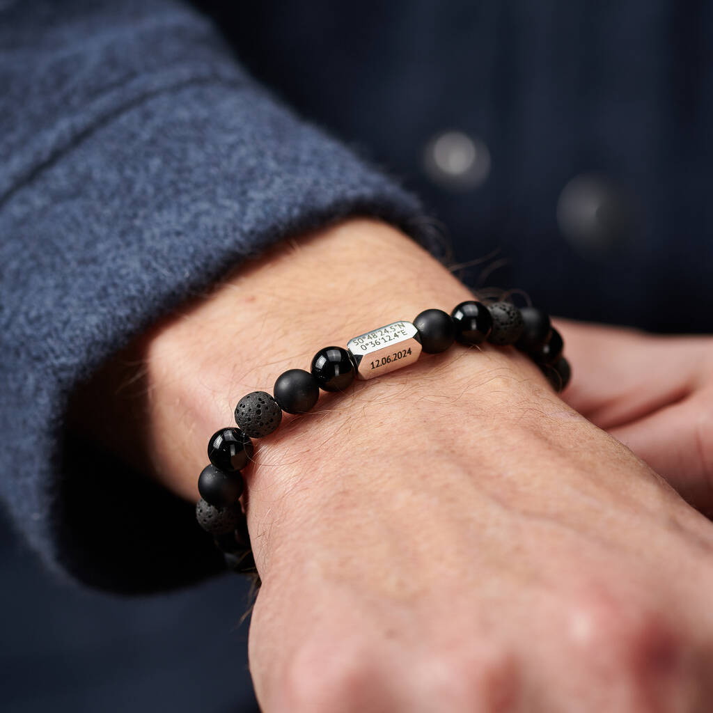 Personalised Men's Sterling Silver And Black Onyx Bead Coordinates Bracelet
