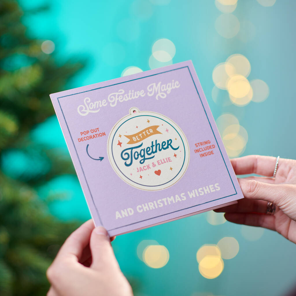 Personalised Pop Out Couples Bauble Christmas Card