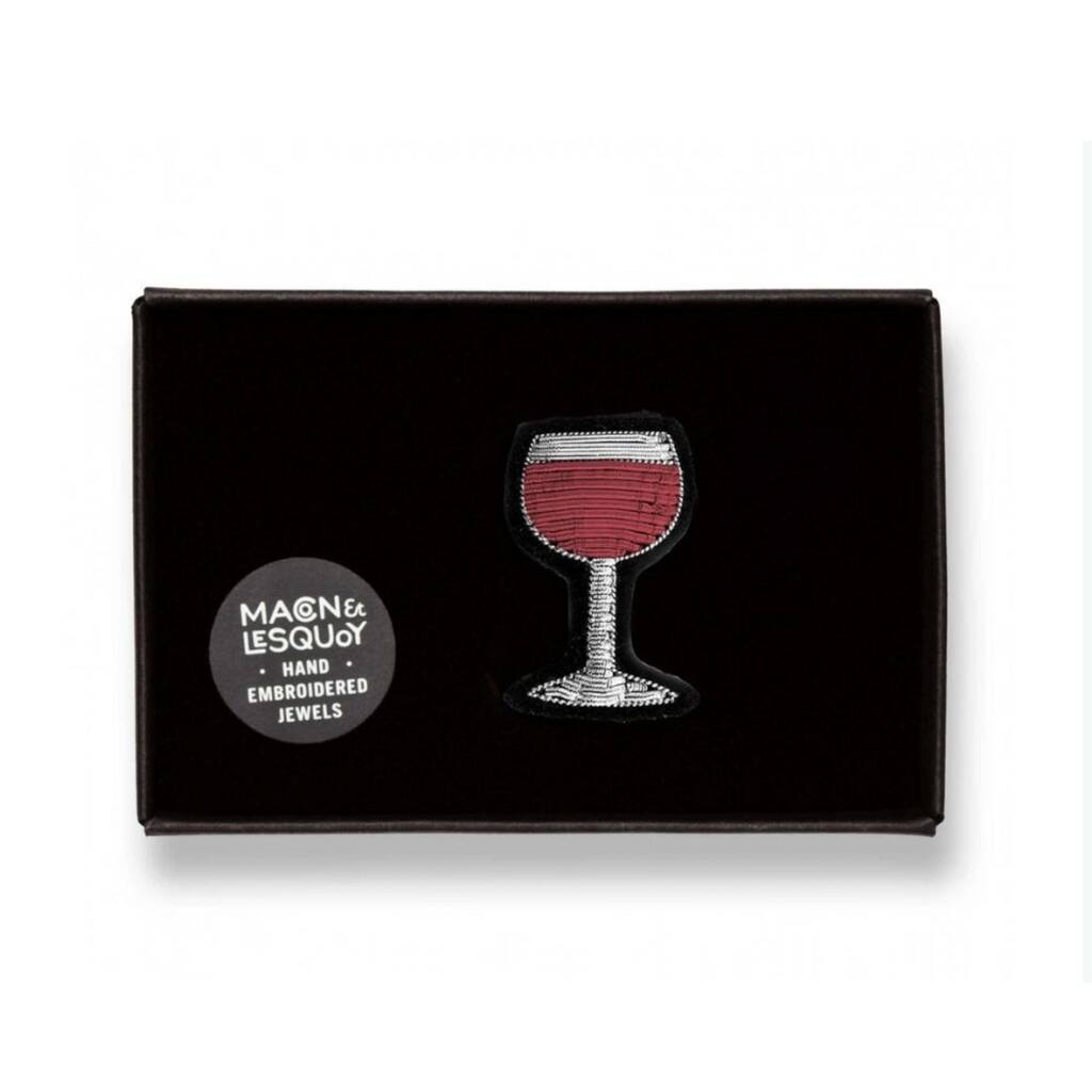 Hand Embroidered Cannetille Brooch Pin 'Glass Of Wine'