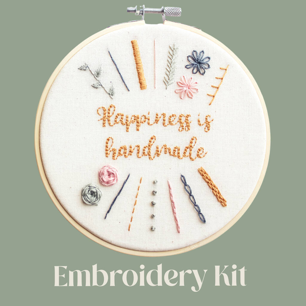 Beginner hand embroidery kit which includes everything you need to start your embroidery journey