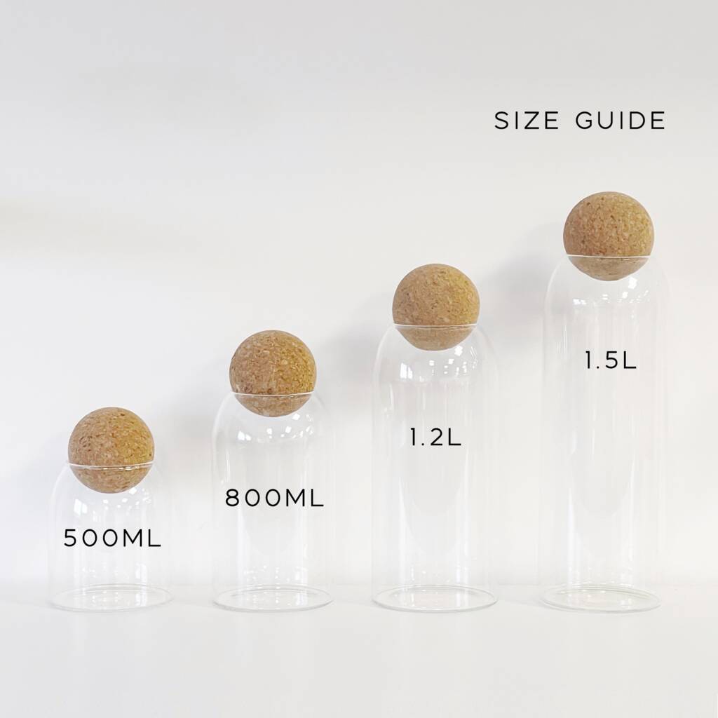 Cork Ball Glass Storage Jar With Personalised Waterproof Label