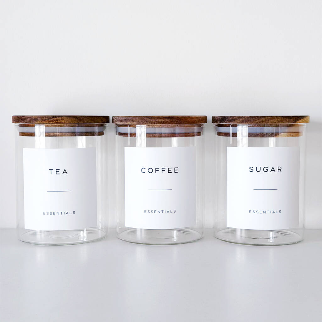 Tea, Coffee, Sugar Jars Set Of Three Acacia Jars