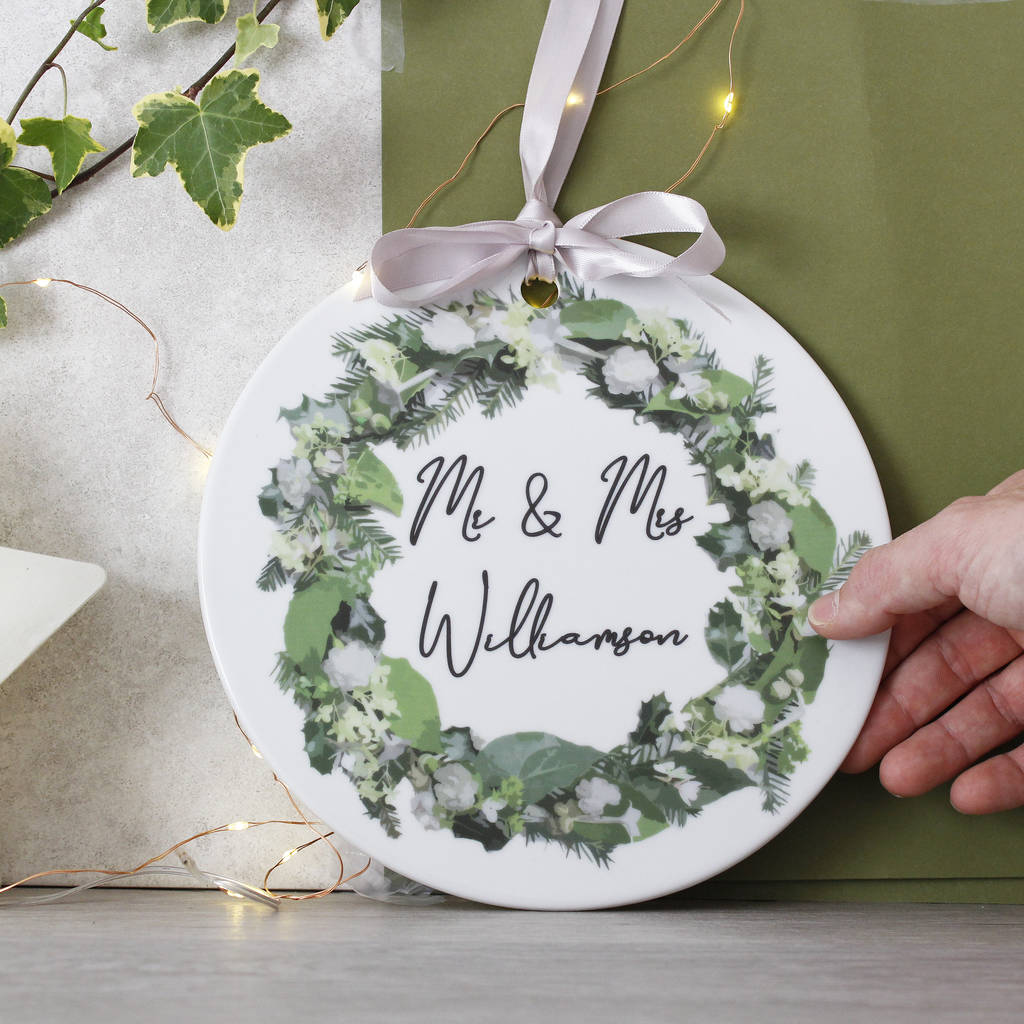 Mr And Mrs Ceramic Door Wreath Christmas Decoration