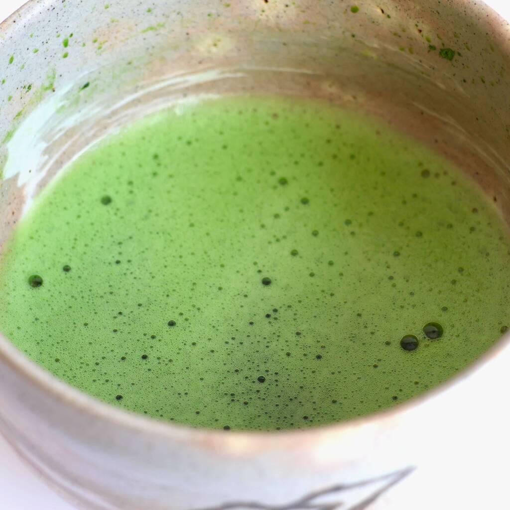 Hold the bowl steady with one hand and use the matcha whisk in the other hand to whisk briskly in a zigzag "M" or "W" motion. Whisk until the matcha becomes frothy with tiny bubbles and has a smooth, creamy texture.