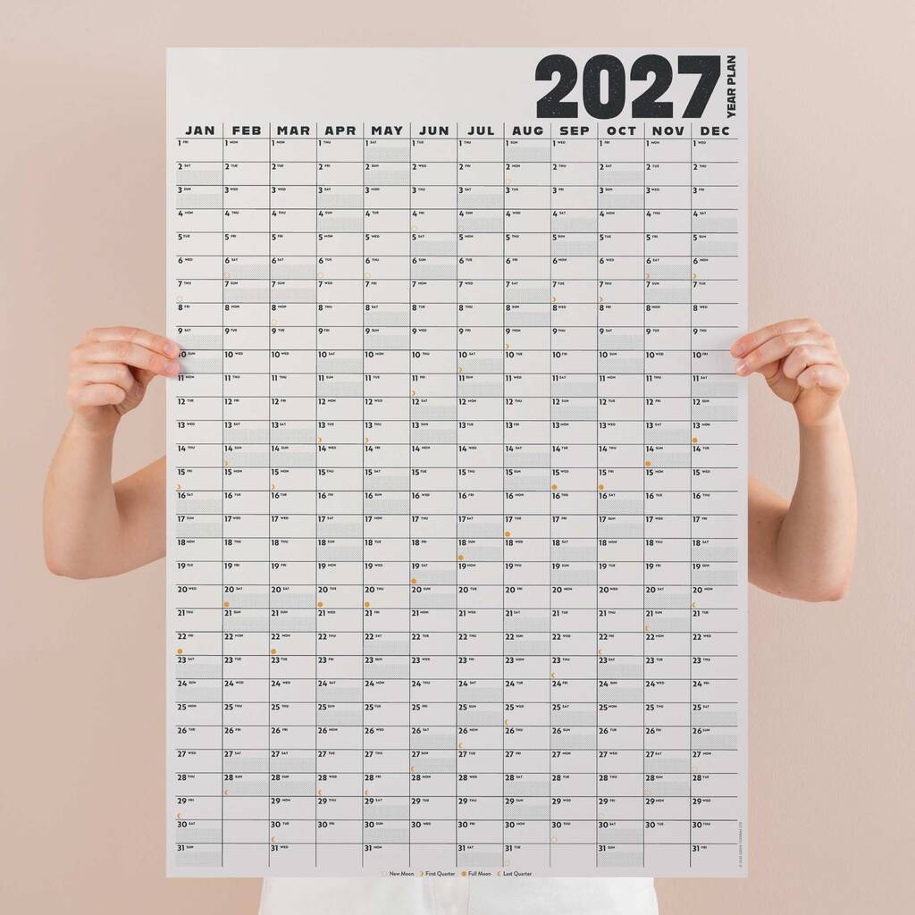 2027 Large A1 Wall Planner | Portrait | Black And White