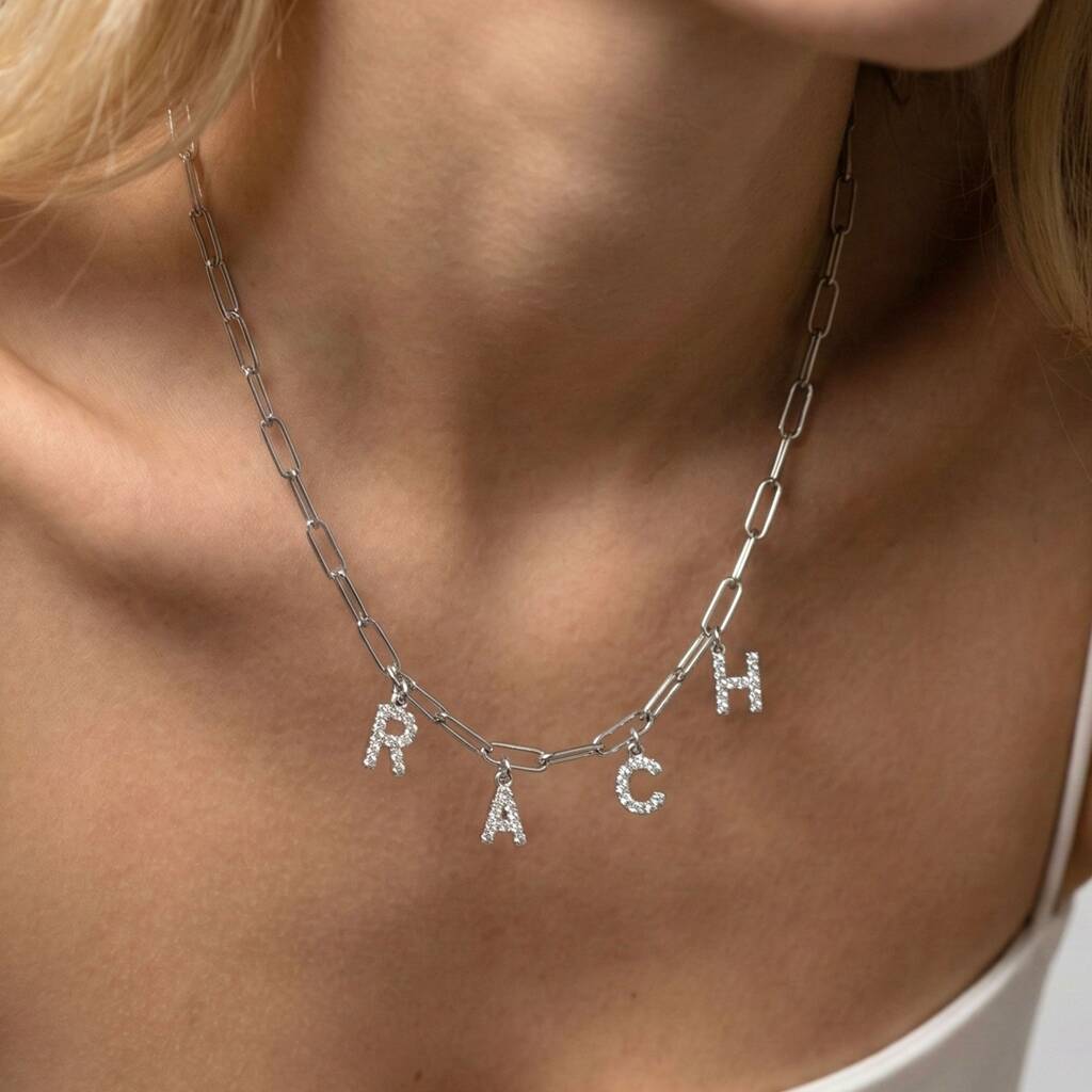 Charm Builder™ Silver Paperclip Crystal Initial Name Necklace
