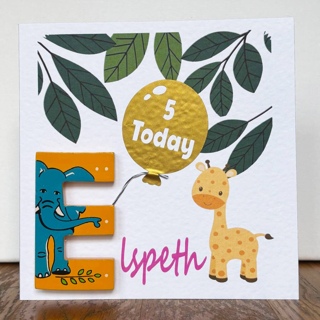 • Personalised Giraffe Birthday Card With Reusable Wooden Door Letter In Lots Of Colours, thumbnail 1 of 2