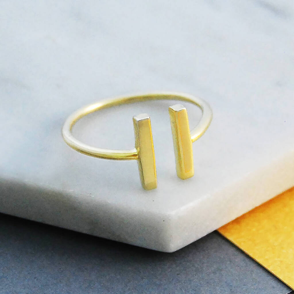 Bar Ring And Bangle Gold Plated Silver Jewellery Set