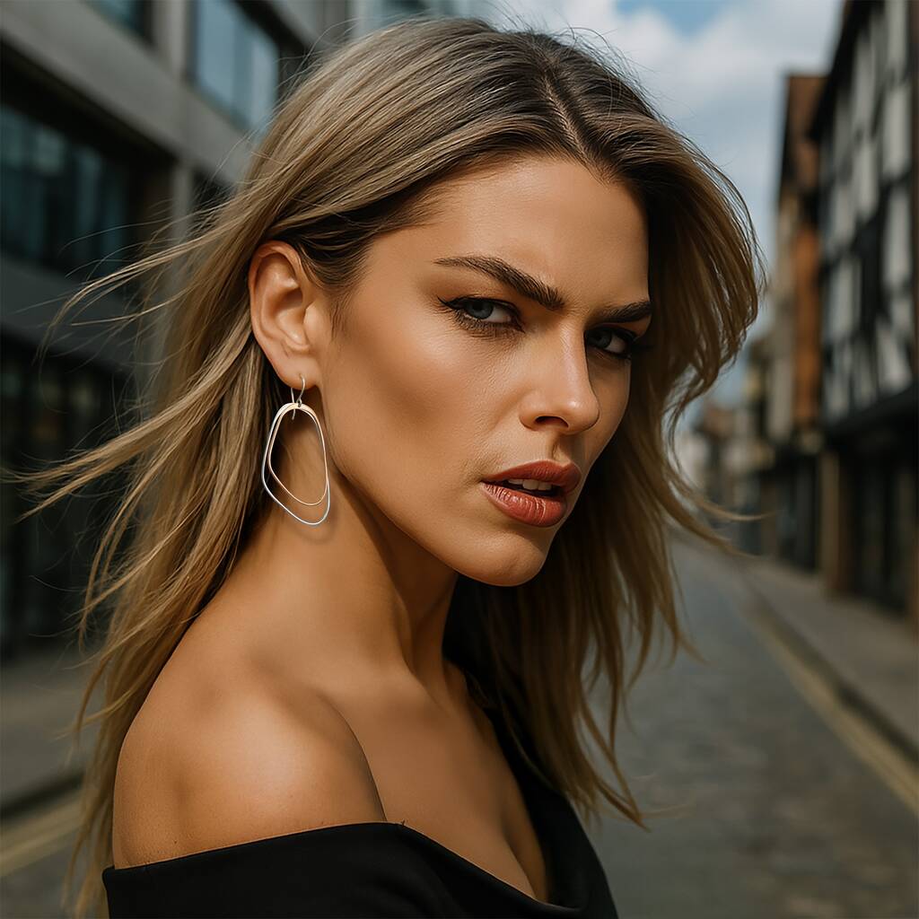 Sterling Silver And Rose Gold Plated Long Hoop Earrings