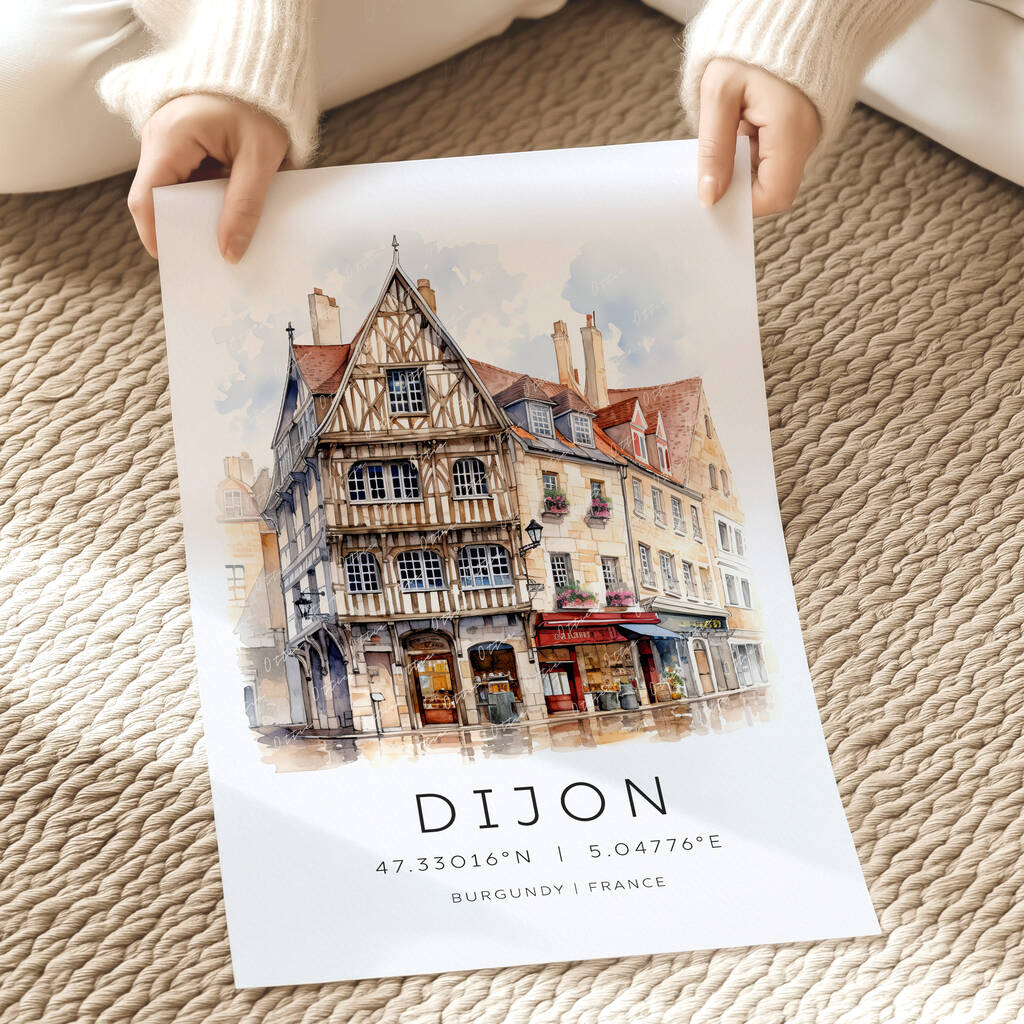 • Dijon France Travel Poster With Map Coordinates, thumbnail 7 of 7