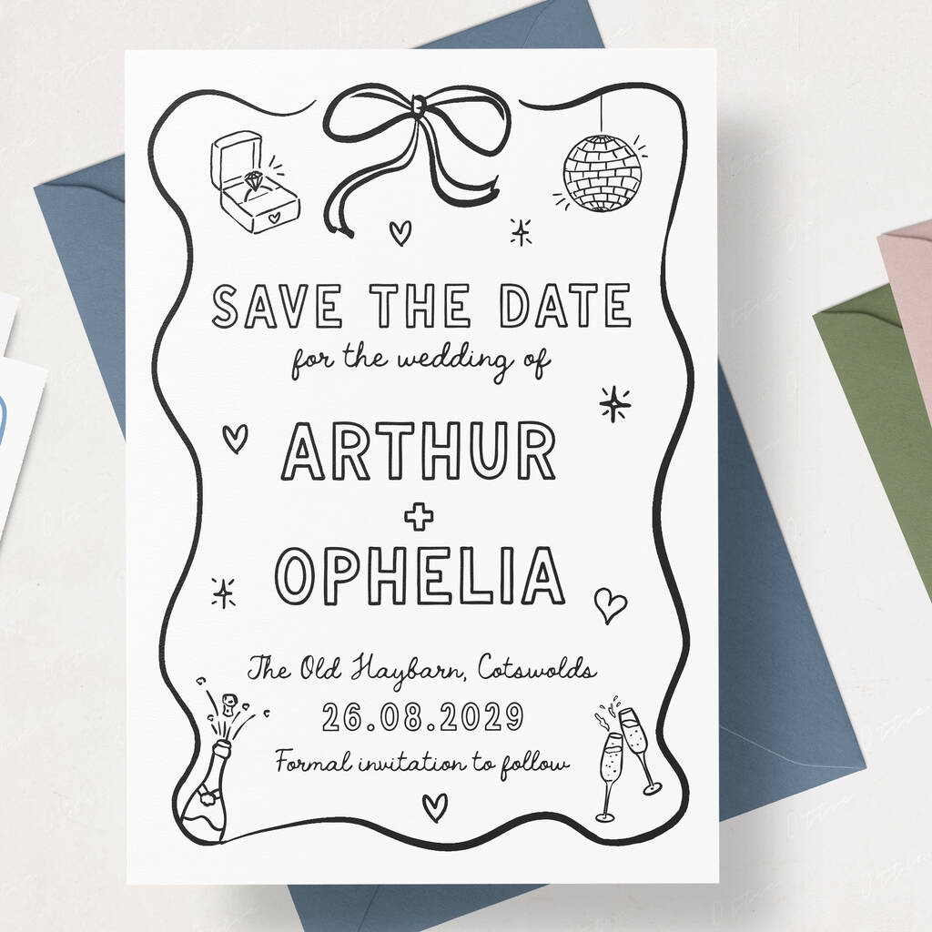 Congratulations on your engagement! The venue is set, the excitement is building, and now it's your turn to enchant your guests with our delightful hand drawn scribble style save the date.