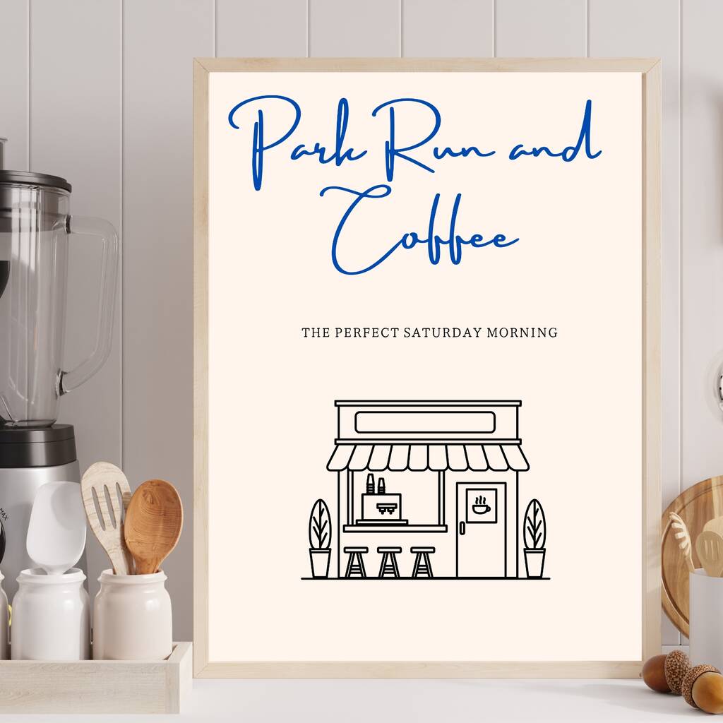 Park run and coffee print, kitchen print, coffee print, quirky art print, wall art gift, food and drink print, gift for runners
