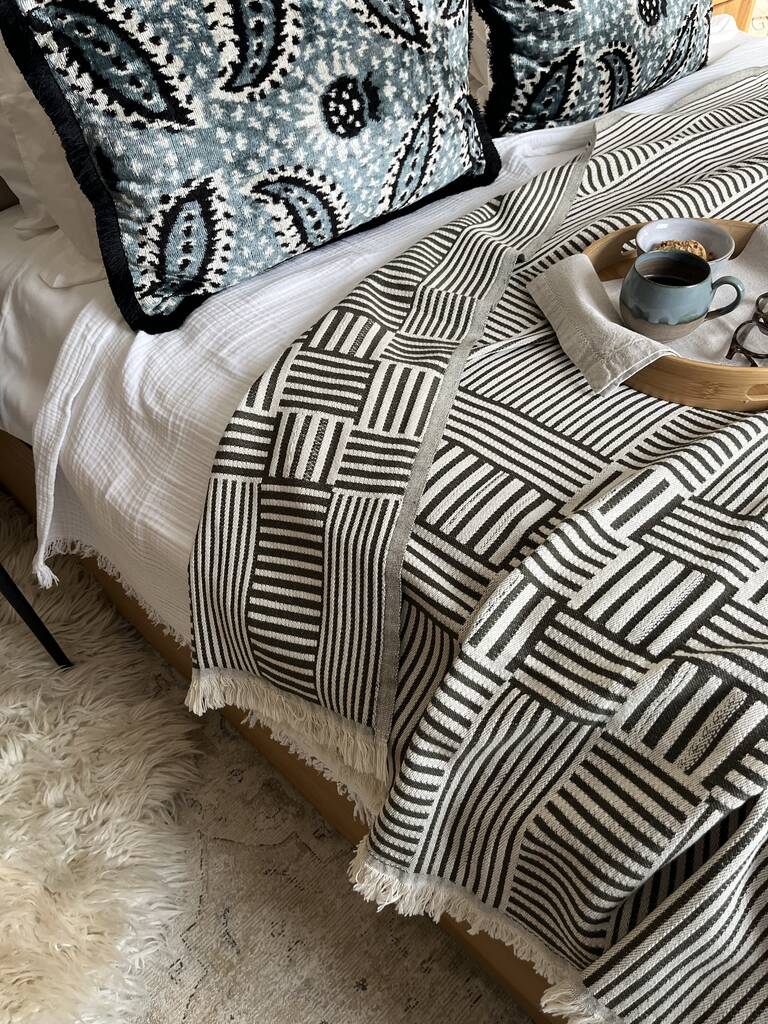 Hestia Modern, Striped Cotton Blanket Dark Olive Green