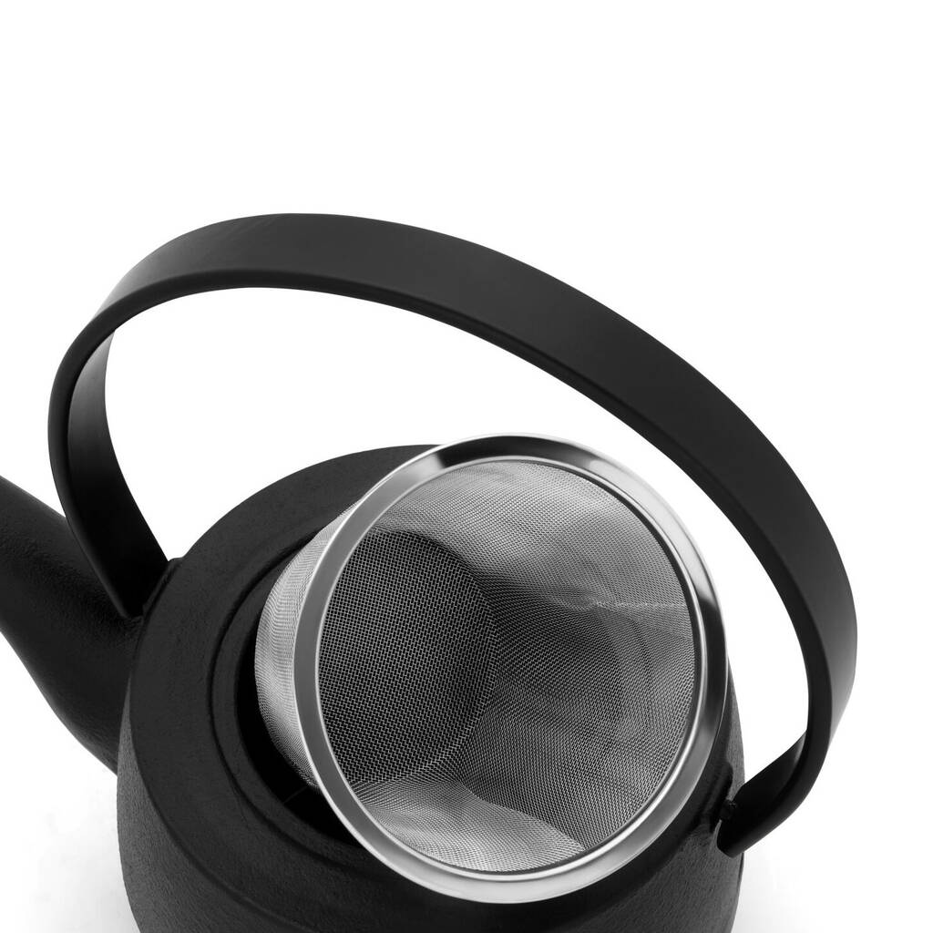Elevate tea time with the cast iron Kobe teapot. Its 1.2L capacity, enamel interior, stainless steel filter combine durability, style, and effortless loose-leaf brewing.Elevate your tea experience with the exquisite cast iron Kobe Teapot, a perfect fusion of Asian elegance, tradition, and modern functionality. Designed with a generous 1.2-liter capacity, it is ideal for sharing tea with friends or enjoying a peaceful solo moment. The high-quality enamel-coated interior ensures long-lasting durability, effortless cleaning, and a smooth, non-reactive surface that preserves the delicate flavors of your teas. Its fine stainless steel mesh filter makes brewing loose-leaf tea simple, efficient, and authentic, allowing the full aroma and taste to develop. Stylish, functional, and timeless, this teapot adds beauty, sophistication, and serenity to every tea ritual.