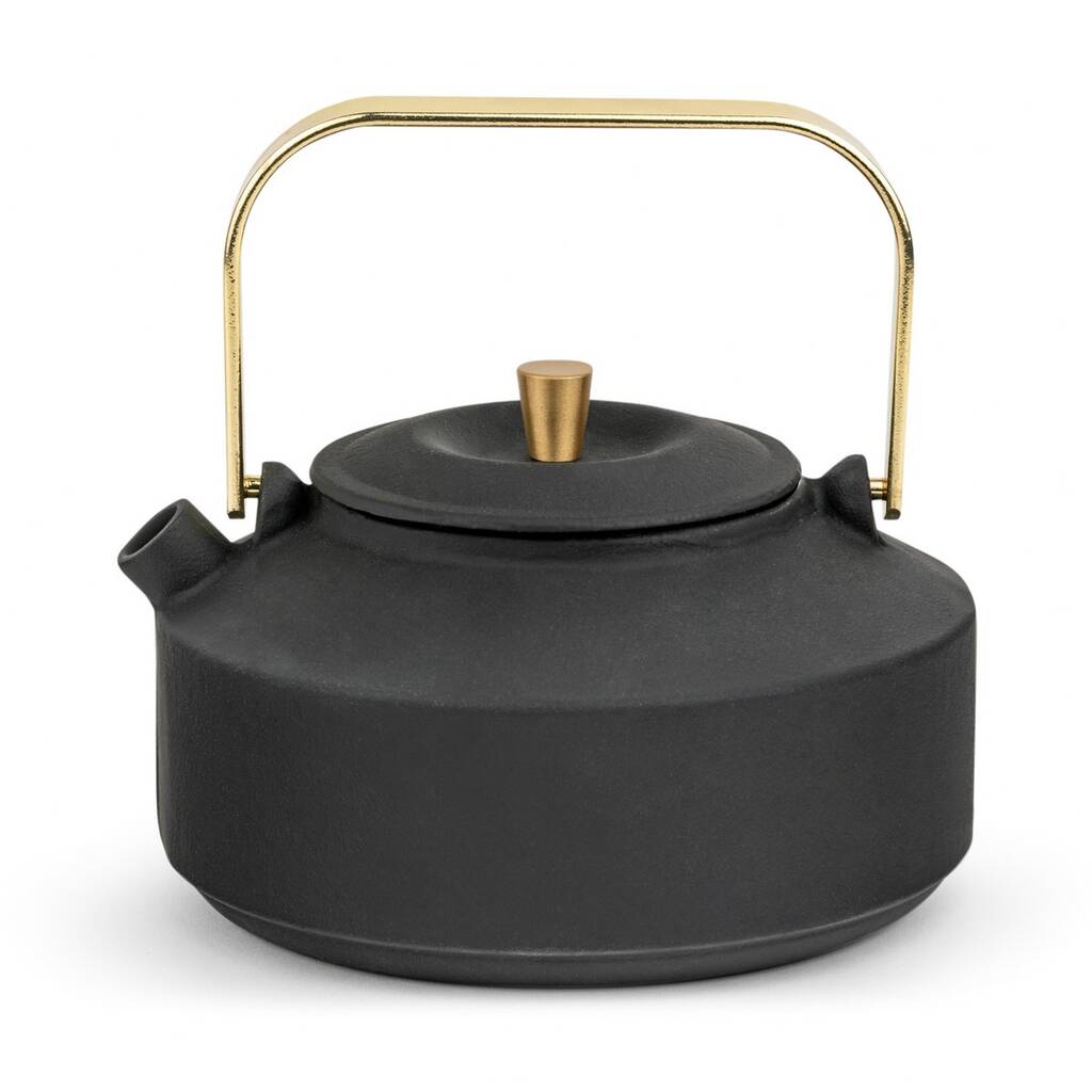 This cast iron teapot combines elegance and function. Its matte black finish, gold accents, 1L capacity create a serene, sophisticated centerpiece for mindful tea rituals.Experience a timeless tea ritual with this elegant cast iron teapot, designed to blend beauty and functionality seamlessly. Its matte black surface exudes calm, while the gold handle and knob add a sophisticated touch, complementing both modern and zen-inspired interiors. With a generous 1-liter capacity, it’s perfect for extended tea sessions, whether shared with friends or savored alone. The heavy cast iron walls retain heat, keeping your tea warm for longer, while the fine gold filter ensures effortless, authentic loose-leaf brewing. More than a teapot, it serves as a centerpiece, inviting relaxation, connection, and mindful enjoyment of every sip.