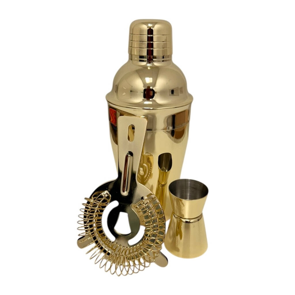 Cocktail Bar Set Of Three In Gold Lacquered Steel