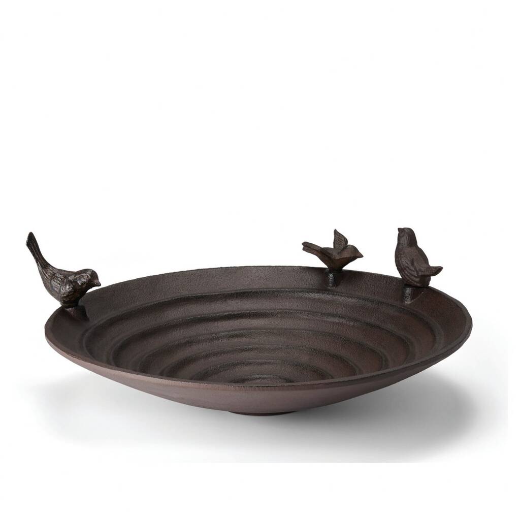 Elegant Cast Iron Bird Bath 37cm With Removable Birds