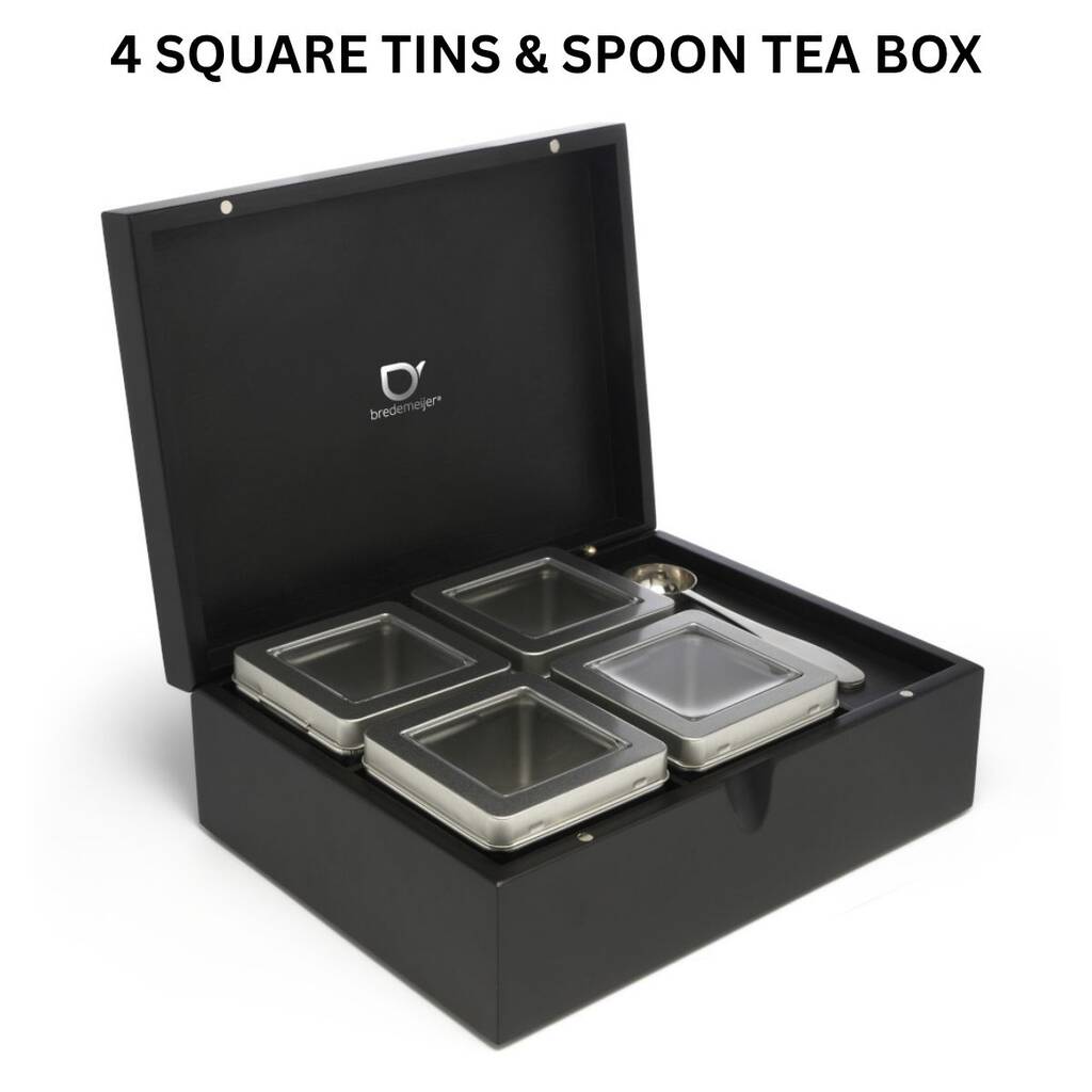 Tea Box With 4 Tins & Spoon - Dimensions: L238 x W181 x H85 mm Weight 1091 Grams