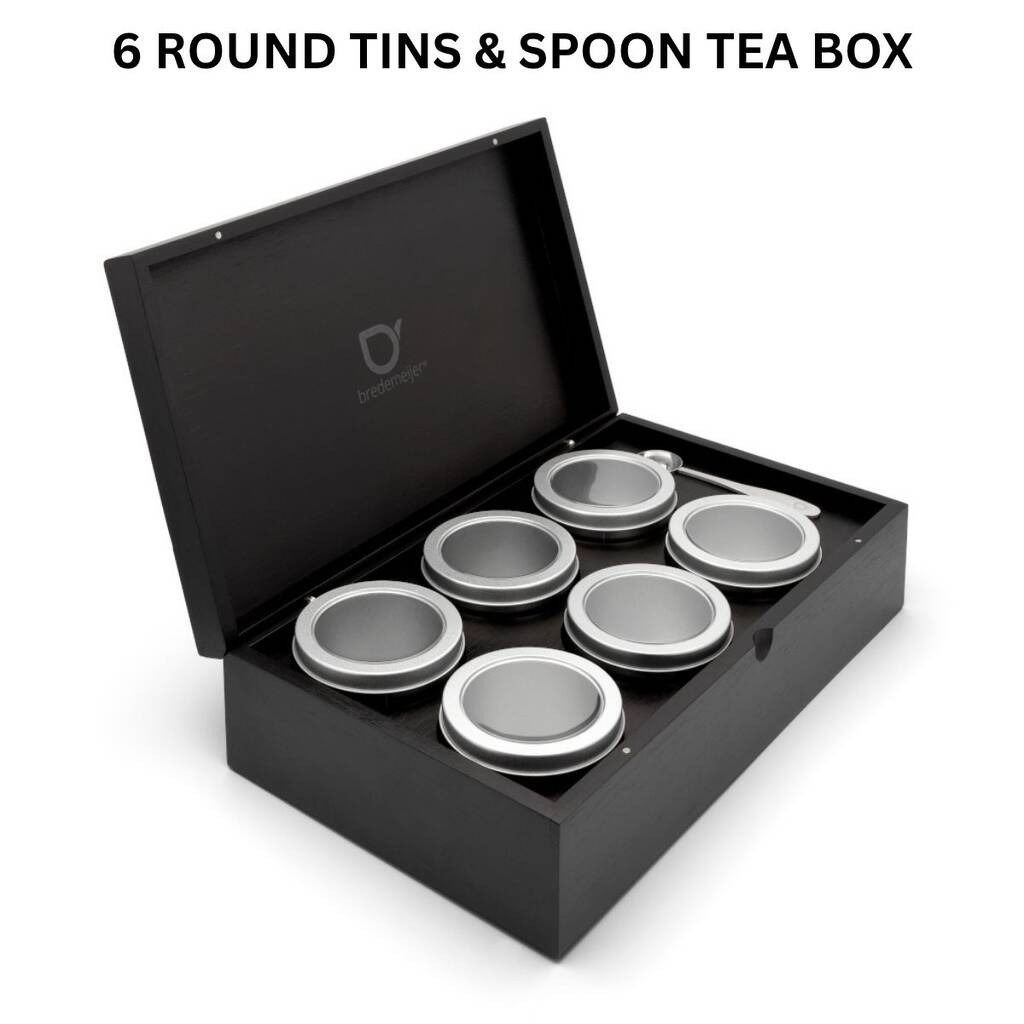 Tea Box With 6 Tins No Spoon - Dimensions: L270 x W185 x H85 mm Weight 1268 Grams