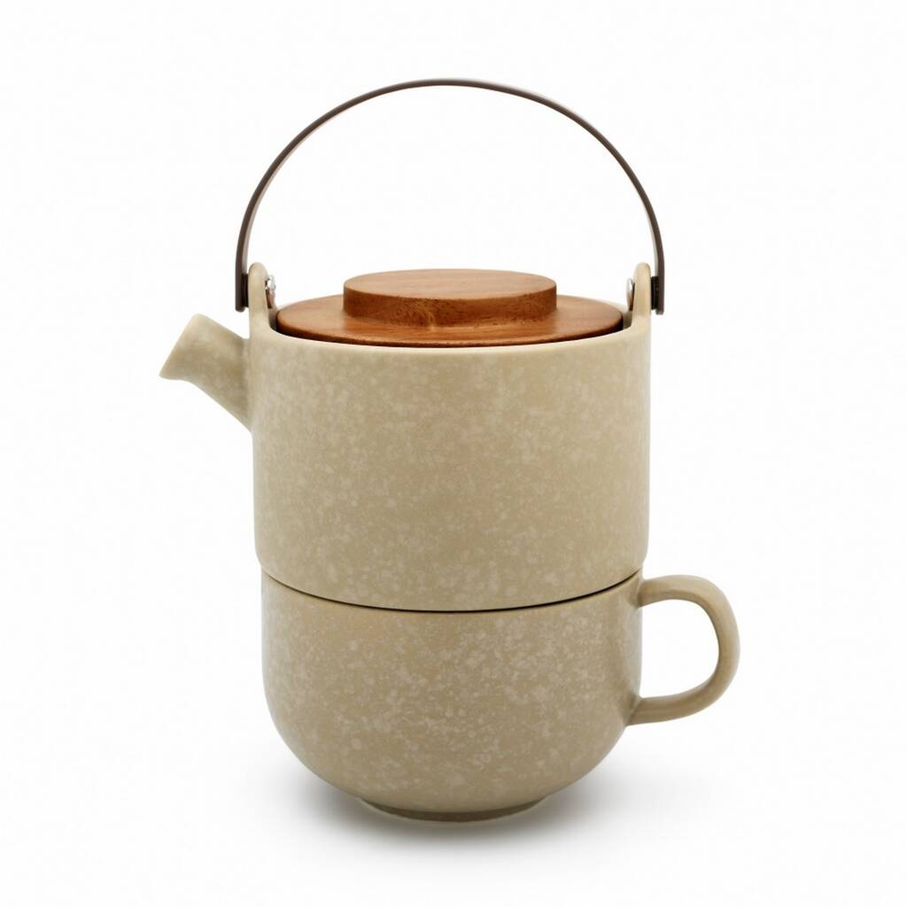 Enjoy a peaceful tea moment with this 0.5L stoneware tea-for-one set featuring a sustainable bamboo lid and smart, drip-free, space-saving oriental-inspired design.Take a moment for yourself and enjoy a refreshing cup of tea with this charming tea-for-one set. Crafted from durable stoneware, the set includes a teapot and matching cup, complemented by a fully sustainable bamboo lid. Its clever design stores the cup beneath the pot, preventing unsightly dribbles and making it perfect for small spaces. Inspired by traditional oriental simplicity, it combines beauty, functionality, and elegance in one compact set. With a generous 0.5-liter capacity, it provides more than enough tea for a relaxing personal moment. Ideal for tea lovers seeking style, convenience, and mindful enjoyment.