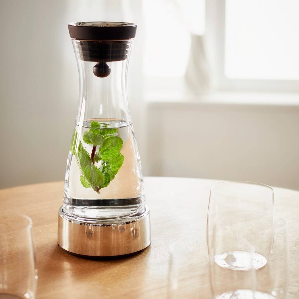 Water Carafe With Cooling Pad In Stand Stainless Steel