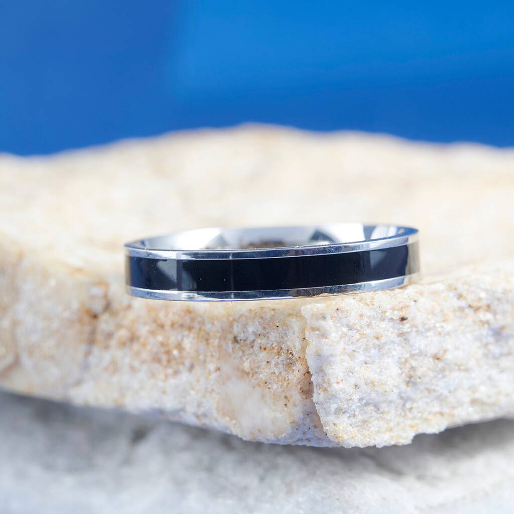 A contemporary icon inspired by timeless refinement. The Belgravia Band blends the strength of tungsten with the allure of deep black ceramic, creating a ring that balances modern minimalism with enduring class. Its sleek inlay runs through the polished silver body like a ribbon of quiet confidence — bold, composed, and unmistakably refined.