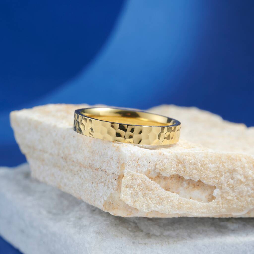 Gold Engraved 6 Mm Hammered Band Ring