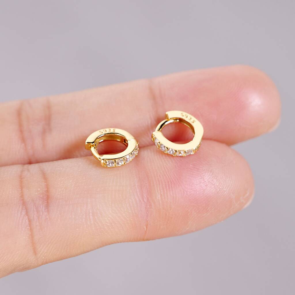 Gold Sparkly Cz Stone Hoops, Gold Huggie Hoops, Small Hoops