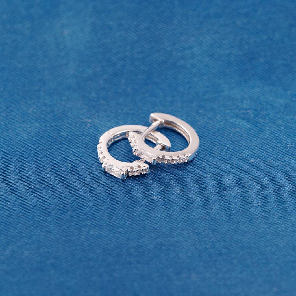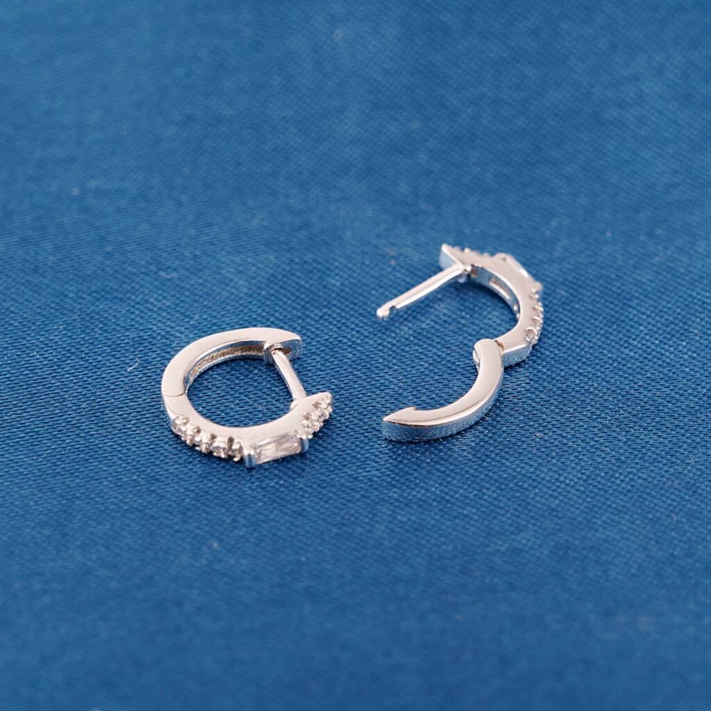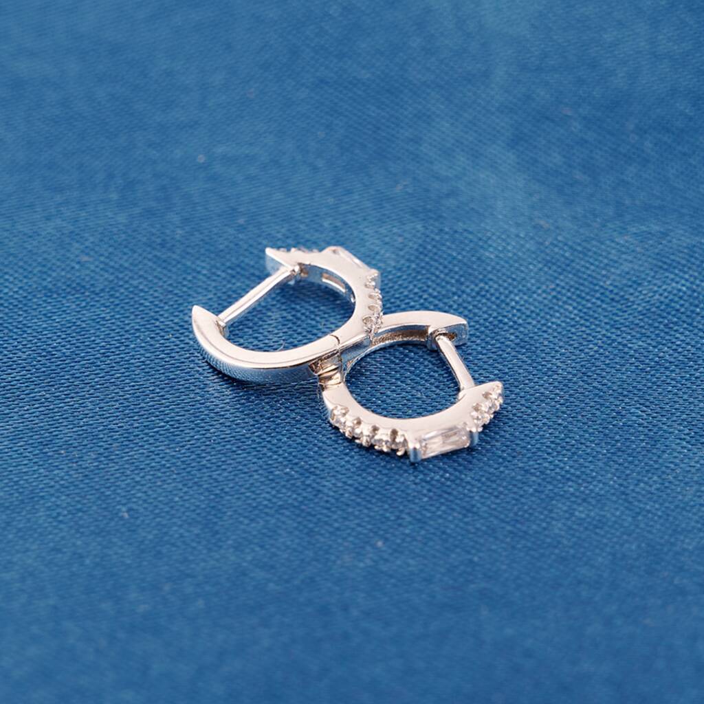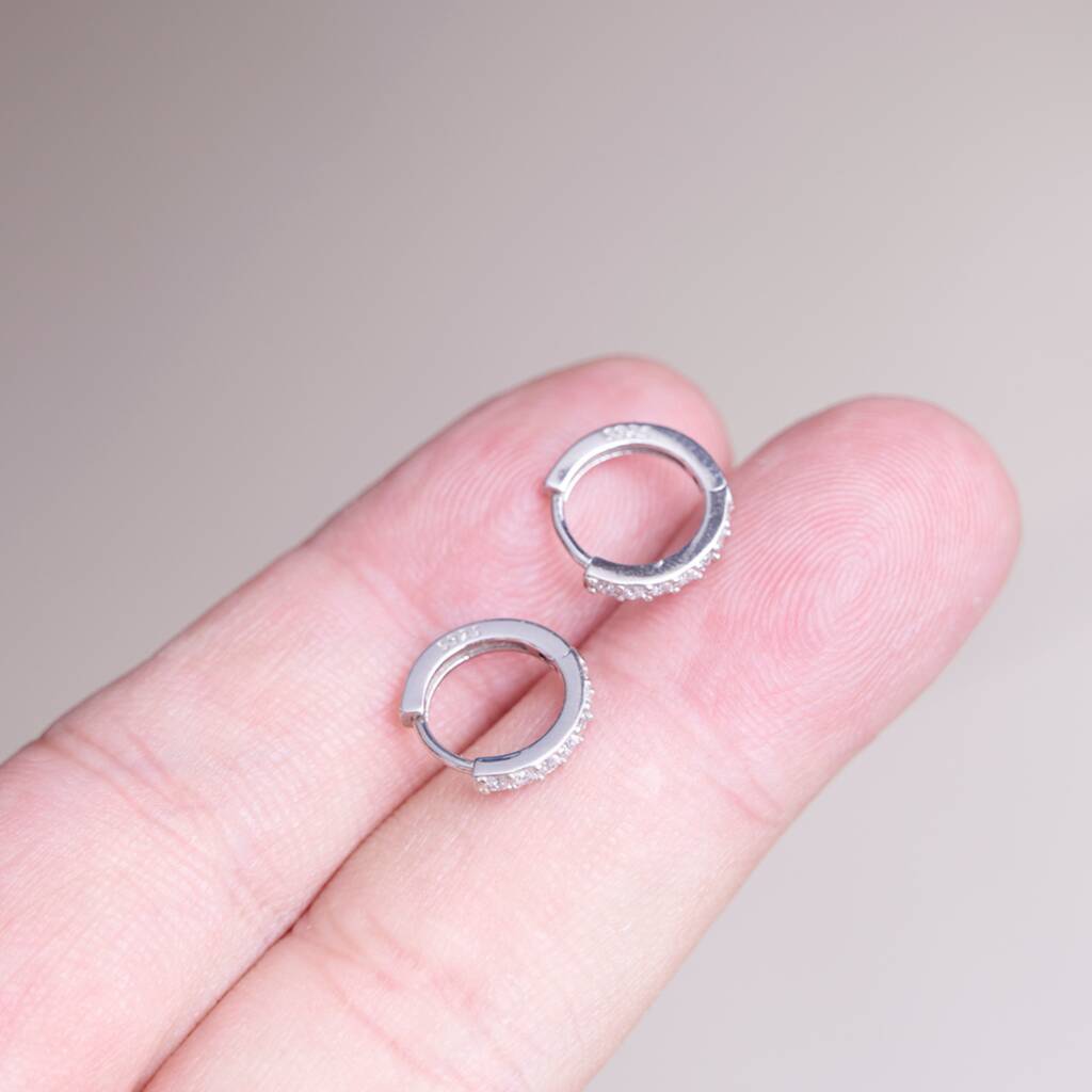 Silver Cz Stone Huggie Earrings, Sparkly Minimalistic Everyday Hoops, Small Hoops