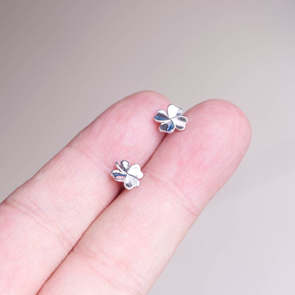 A symbol of luck and charm, these four-leaf clover stud earrings are crafted from solid 925 sterling silver with a polished finish. Their delicate size makes them perfect for everyday wear, whether worn alone for subtle elegance or paired with other studs in a curated ear stack.