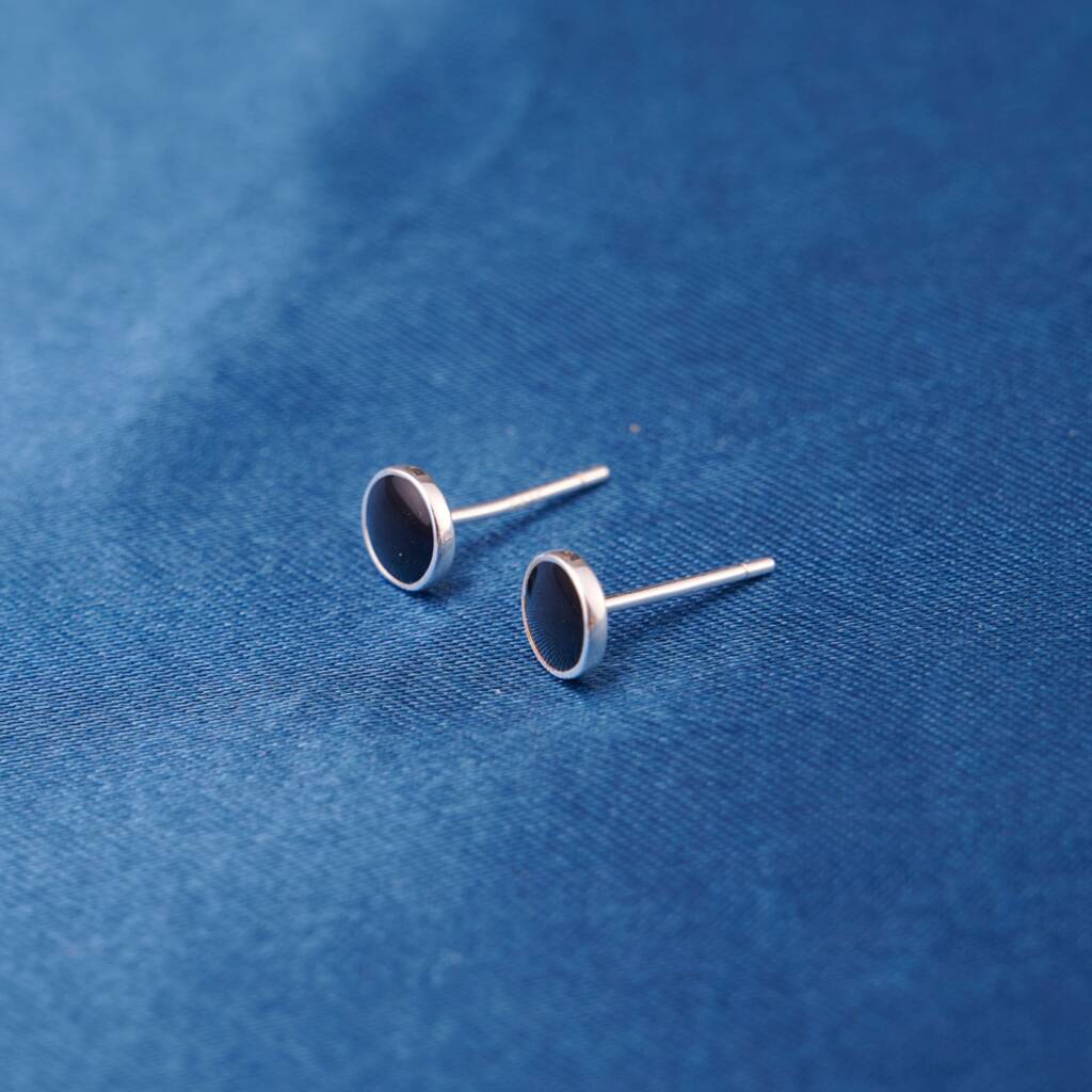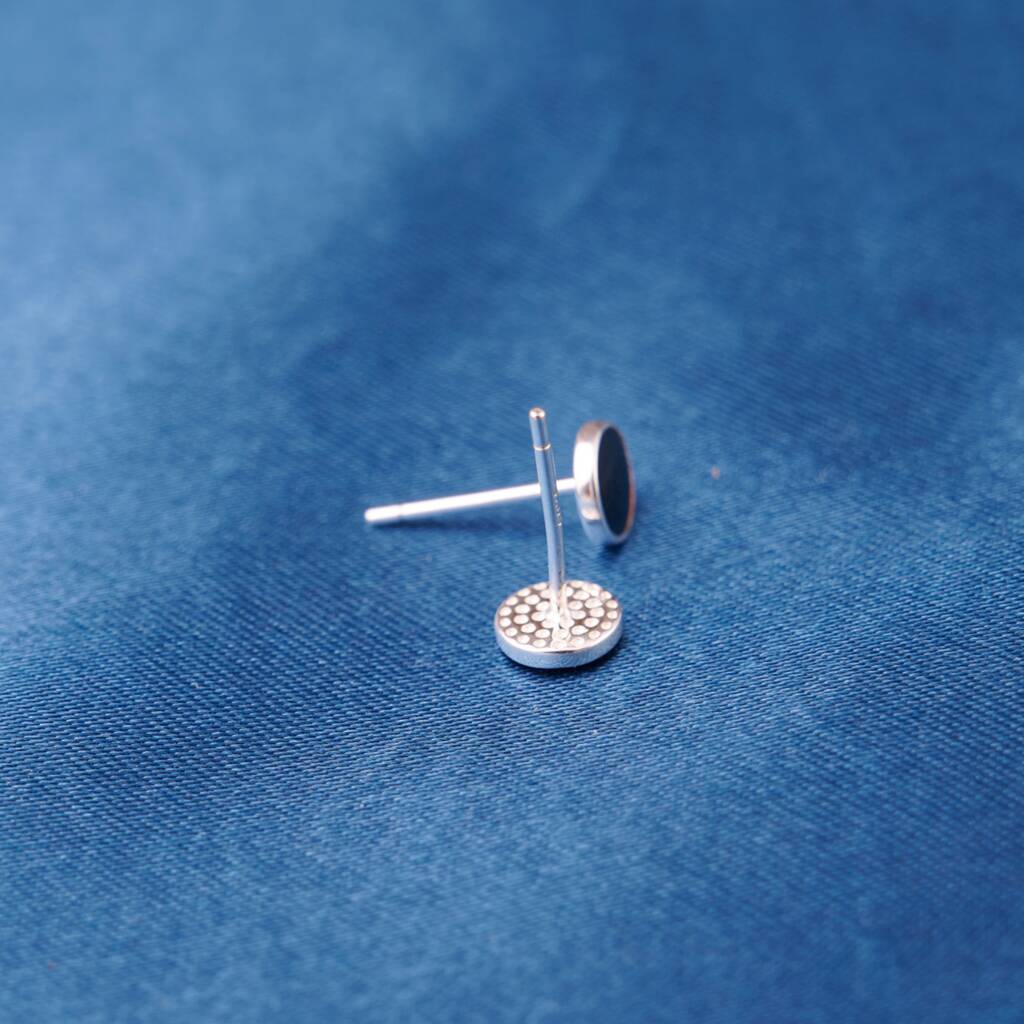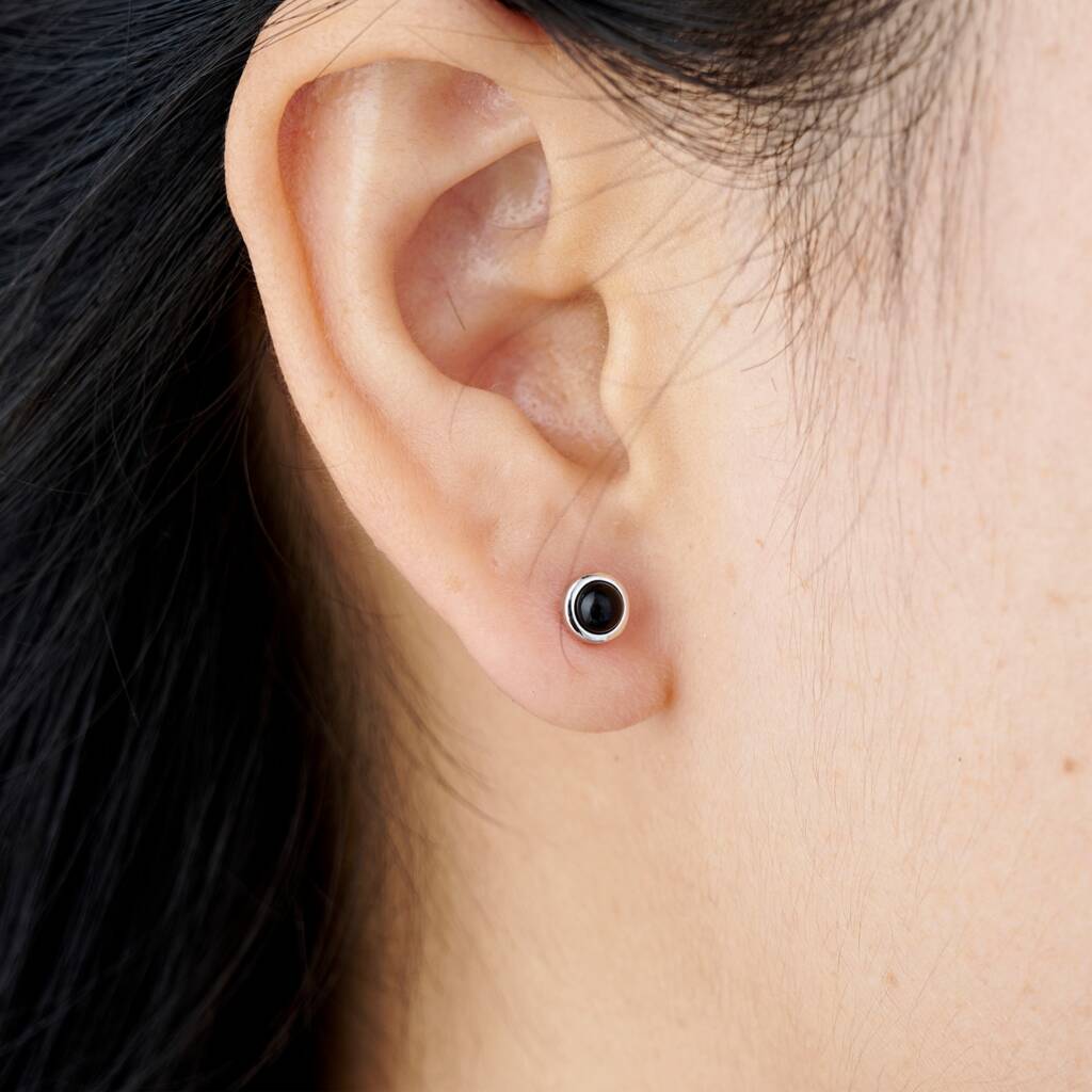 A study in timeless simplicity, these sterling silver studs bring understated elegance to everyday wear. Each earring features a polished round bezel setting that frames a smooth black onyx stone, creating a striking contrast between the deep, jet-black surface and the cool sheen of silver.