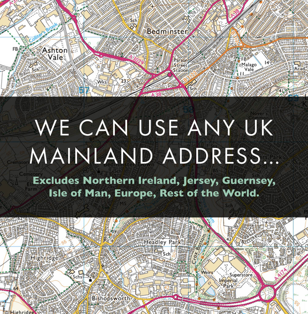 Add your own words to personalise the print - this will appear under the map. Personalisation is optional - if no wording is required the map will fill the print.
