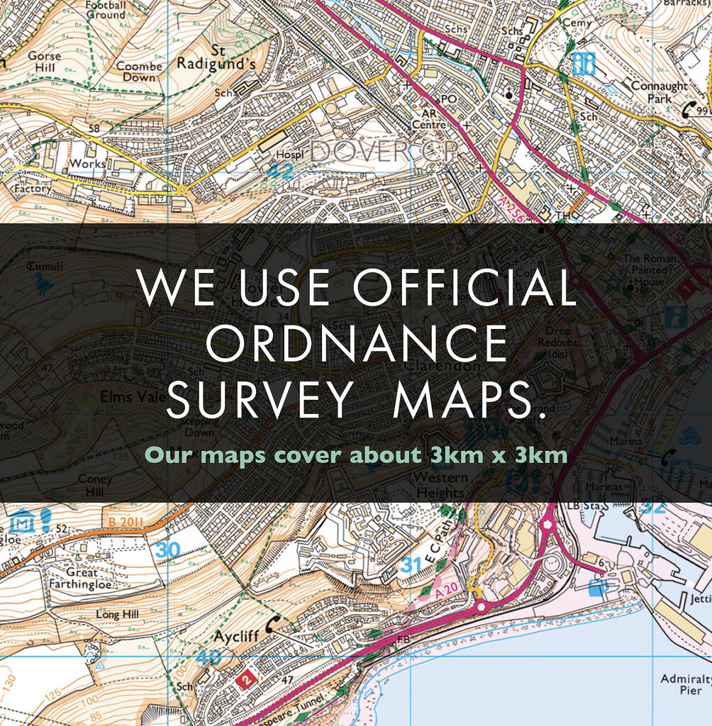 Transform your favourite UK location into this stylish handmade white framed map print using official OS maps. Personalise using your own words.