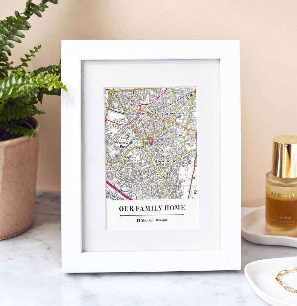 Capture your family home with this custom map print. A charming gift, turning a meaningful location into a stunning, one-of-a-kind home centrepiece.